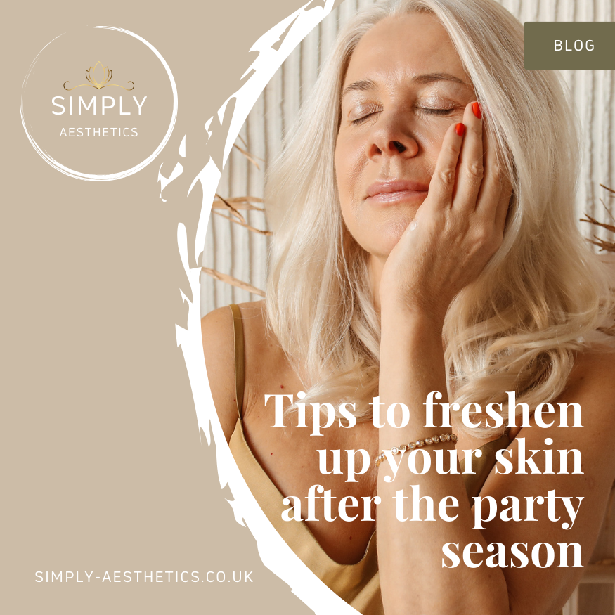 After the party season, your skin may need some extra care to recover from late nights, indulgent food, and possibly the effects of makeup and alcohol. Here are some tips to freshen up your skin: